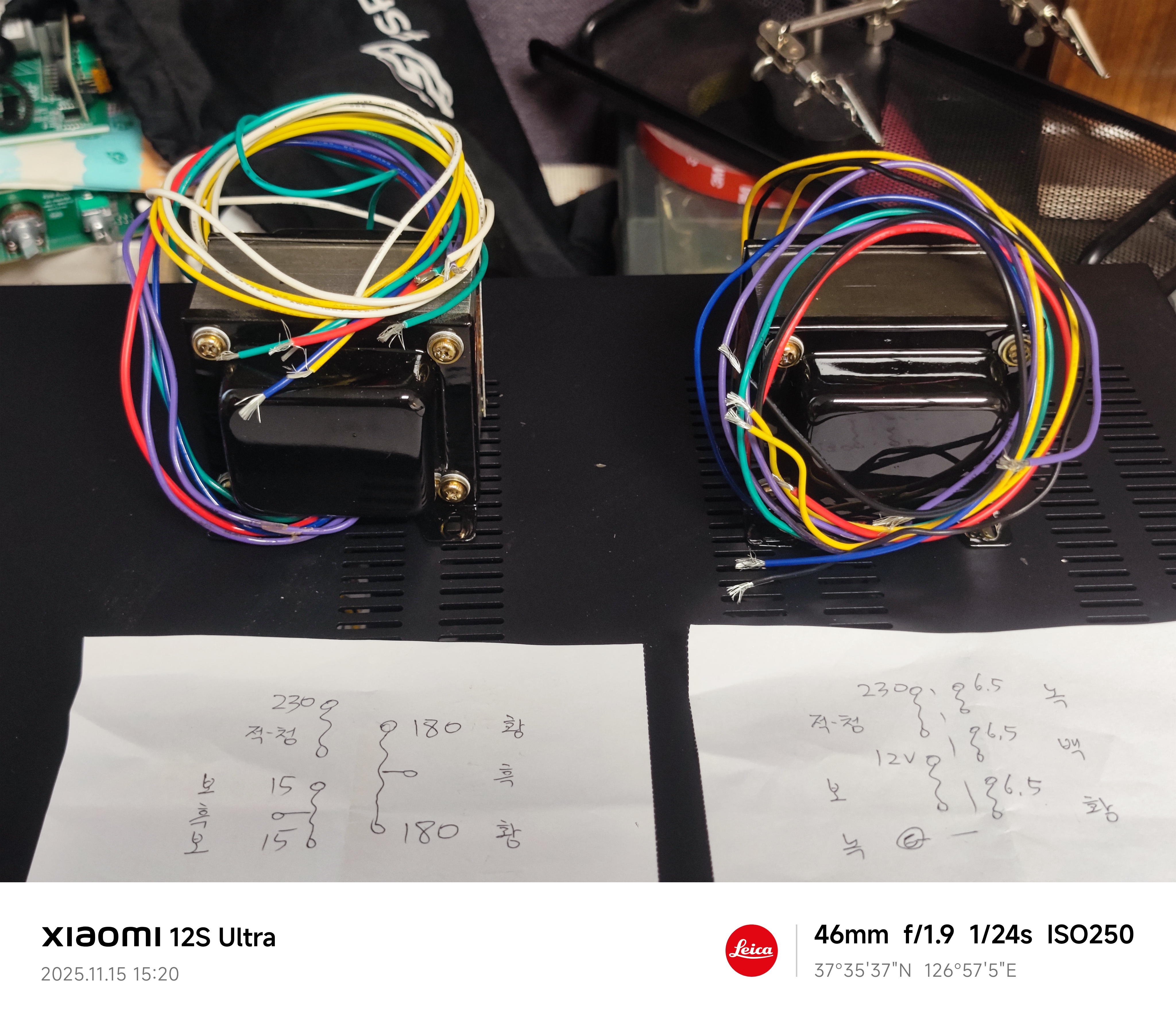 보다시피 1개의 고압 변압기에서는 180V와 15V, 저압 변압기에서는 6.5V x 3개, 12V 이렇게 출력된다.