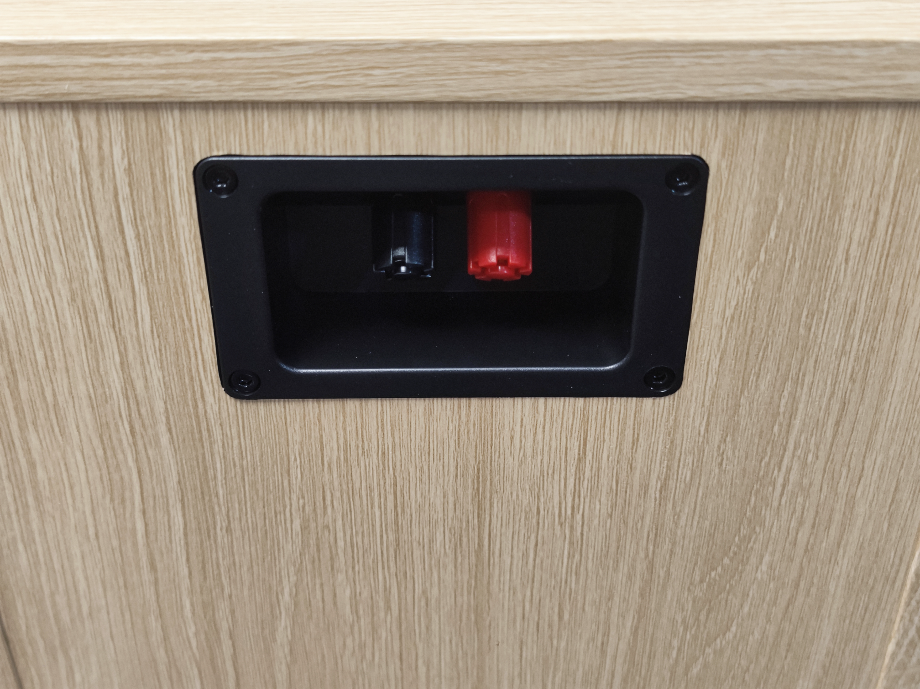 바인딩 포스트 바로 위에 2개의 포트가 위치해 있는데, Bass Reflex via Dual Flared Racetrack Rear-firing Tuned Ports 라는 이름을 가지고 있다.
