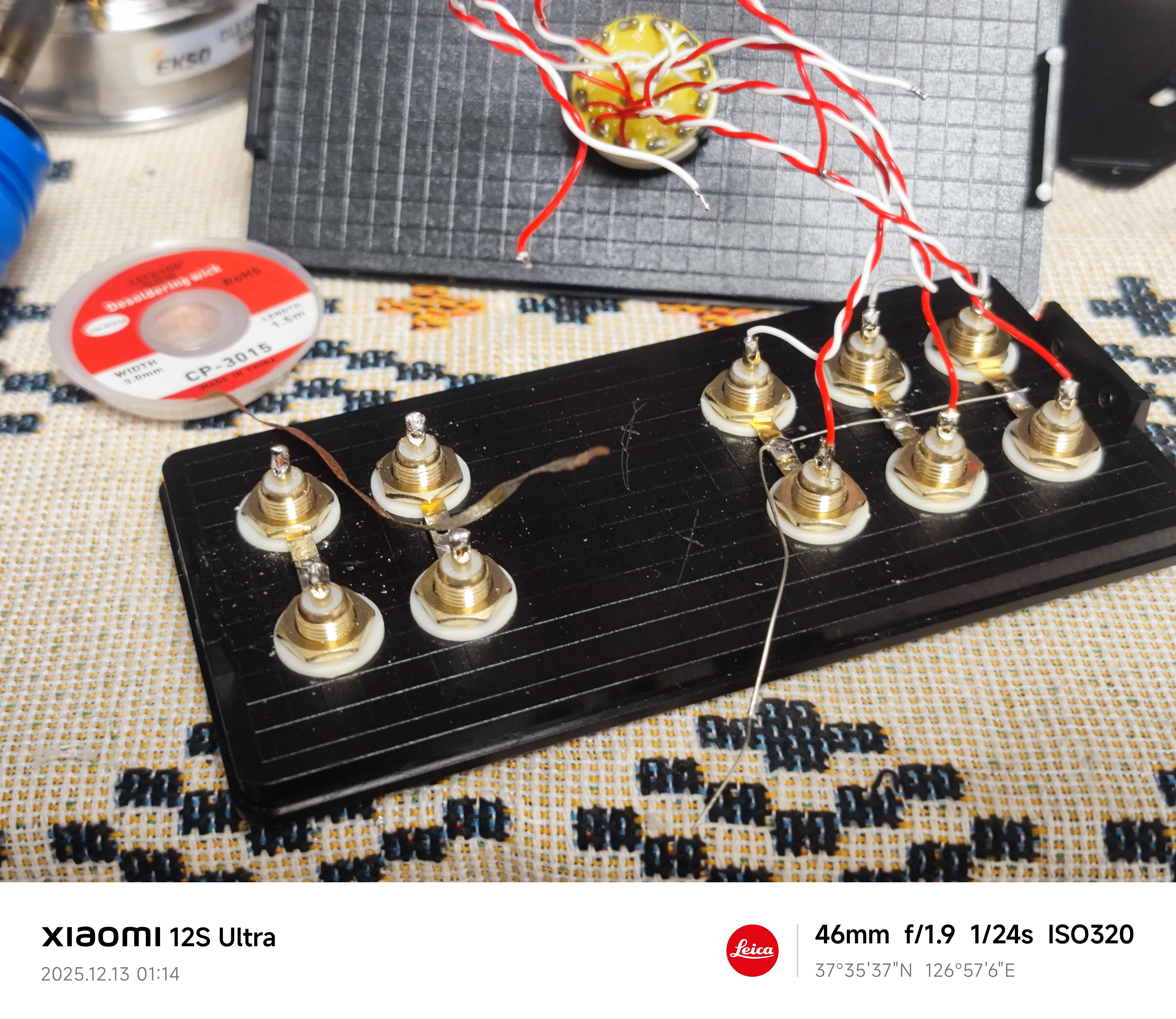 접지를 위해 설치된 와이어와 구리 배선을 탈거하고, 접지 단자가 L/R 채널이 납으로 접합되어 있어서 디솔더링 윅(이거 납흡입 심지였나...뭐였드라...)으로 납을 닦아냈는데,
